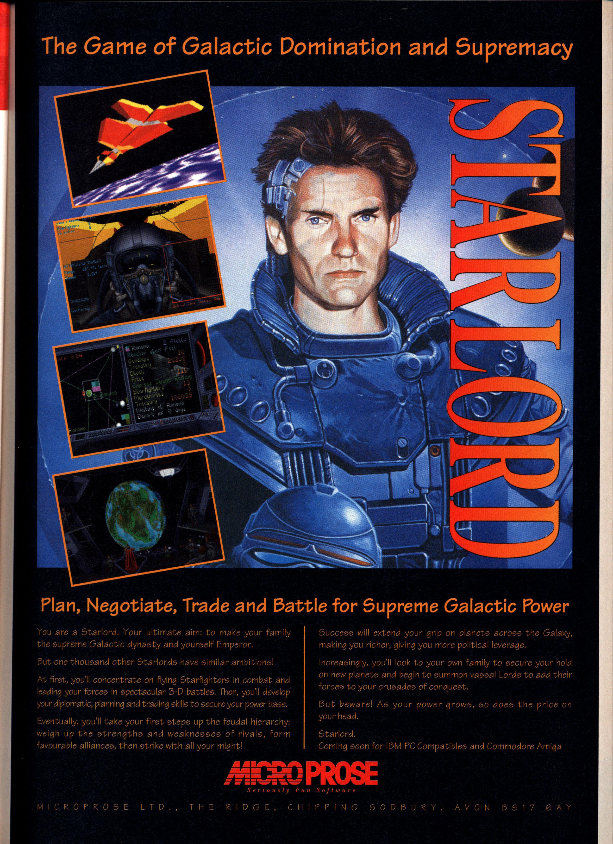 The people most likely to get excited at first mention of Starlord are fans of the original. However MicroProse believes that it should have a much wider appeal than that. There's no shortage of strategy for the traditionalists and there's plenty of'jumping and shooting around bits' for people who like their software to leap out of the screen at them. Let's face it, space strategy/combat games are not exactly unpopular at the moment.