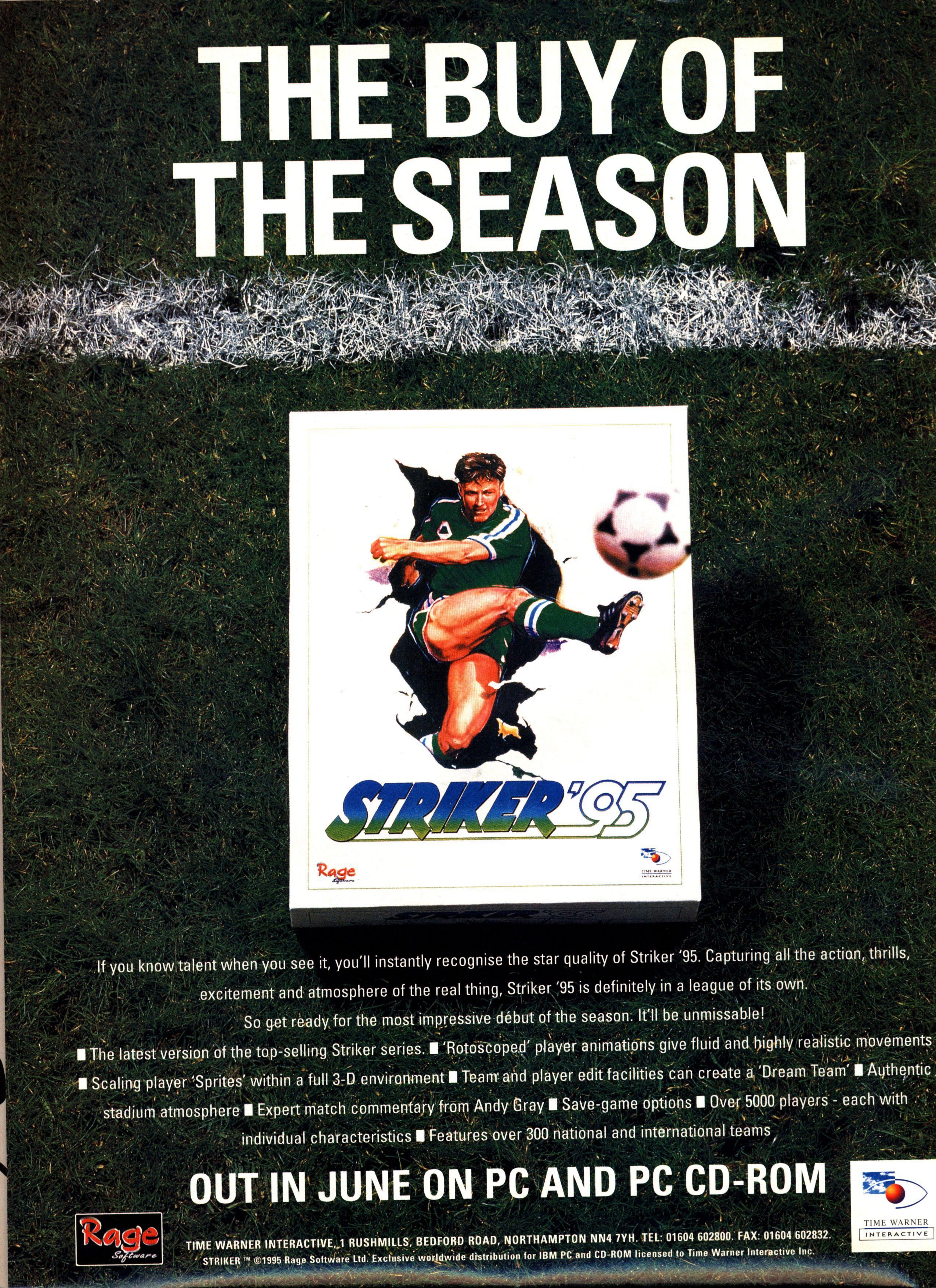 Striker 95 - Snappy Name For An update, eh? Where do they think of them? In a bam in Somerset, actually. I just checked. Good name, though, because what they're actually saying in the title, right, and this is quite clever, is that it's Striker - again, because it was out once before (and it was called Striker) - and it's out this year (1995). Cool. But what does it mean to you. the man in the street? (Or woman, in the unlikely event that you're (a) female, and (b) enough into football that you'll plough through this garbage.) let's look at the chart.