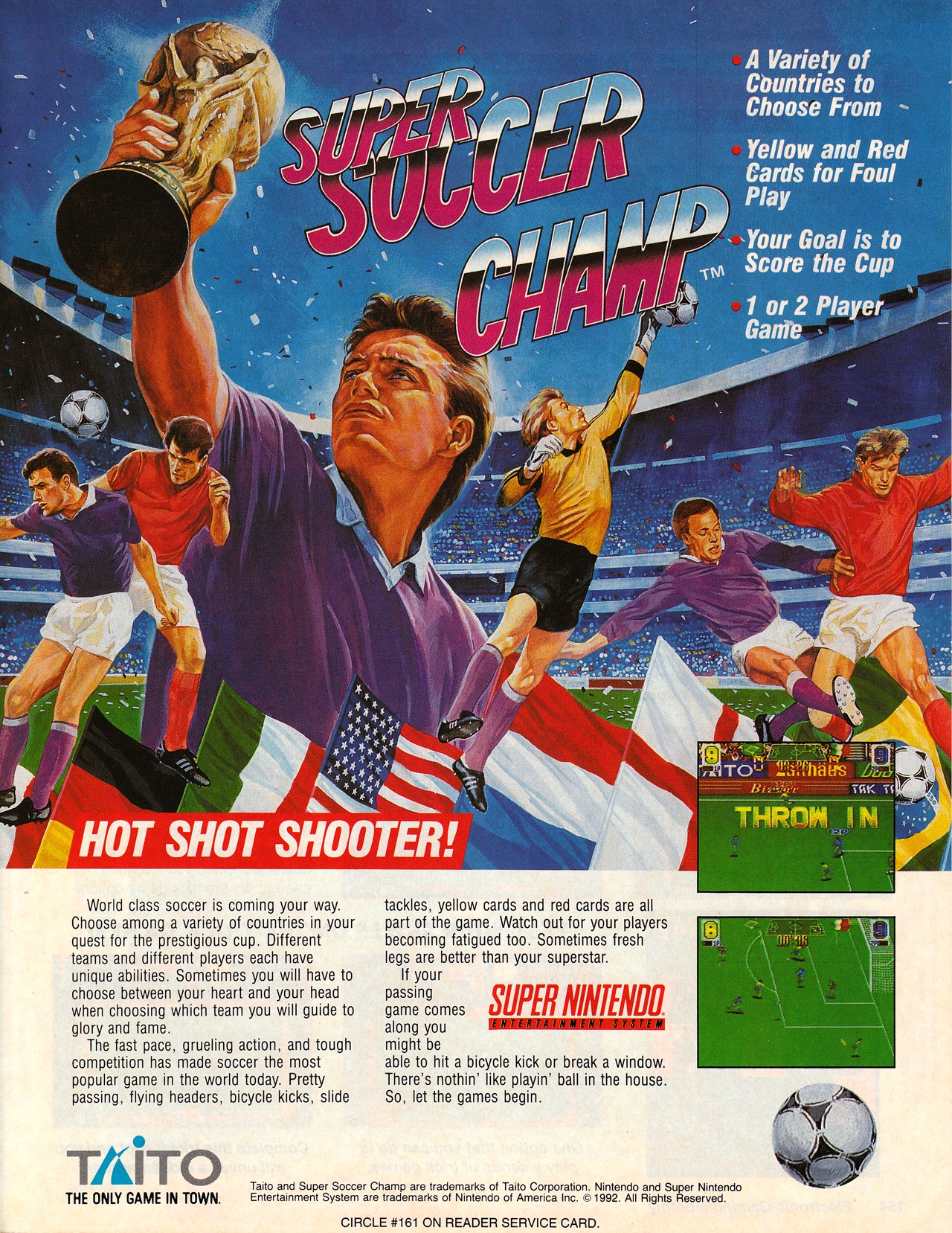 Listen-up soccer fans, the game that you have been waiting for is here at last! Super Soccer Champ for the S-NES is a 16-Bit soccer tour de force. Everything is here including the graphics, the sounds, the control and, most importantly, the fun!