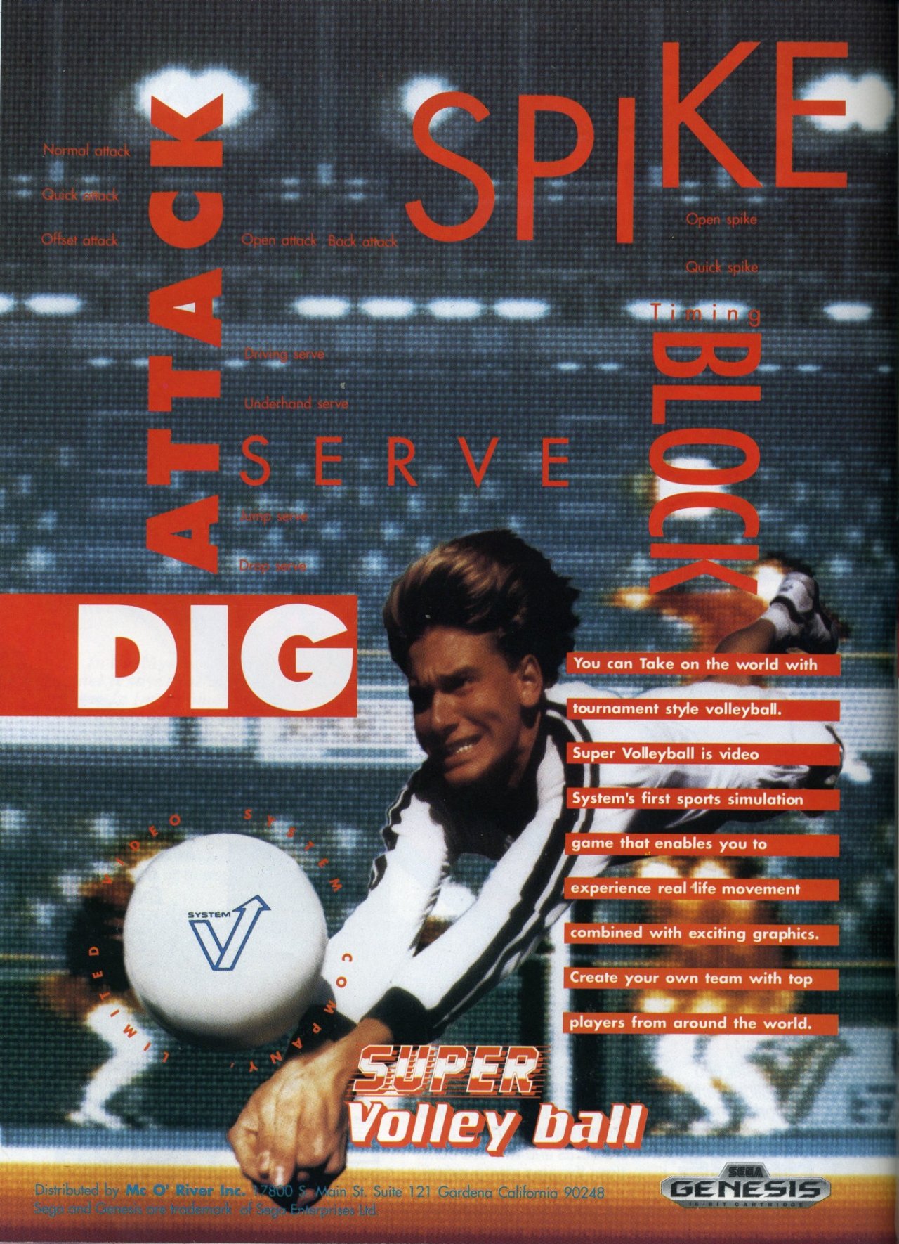 Jumping, diving, setting, and spiking their way through the smoke filled haze of a packed auditorium, the world's finest volleyball players push both mind and body to the limit as they vie for the number one position -- world champions. This isn't Olympic commentary -- it's Olympic-style Super Volleyball for the Genesis!