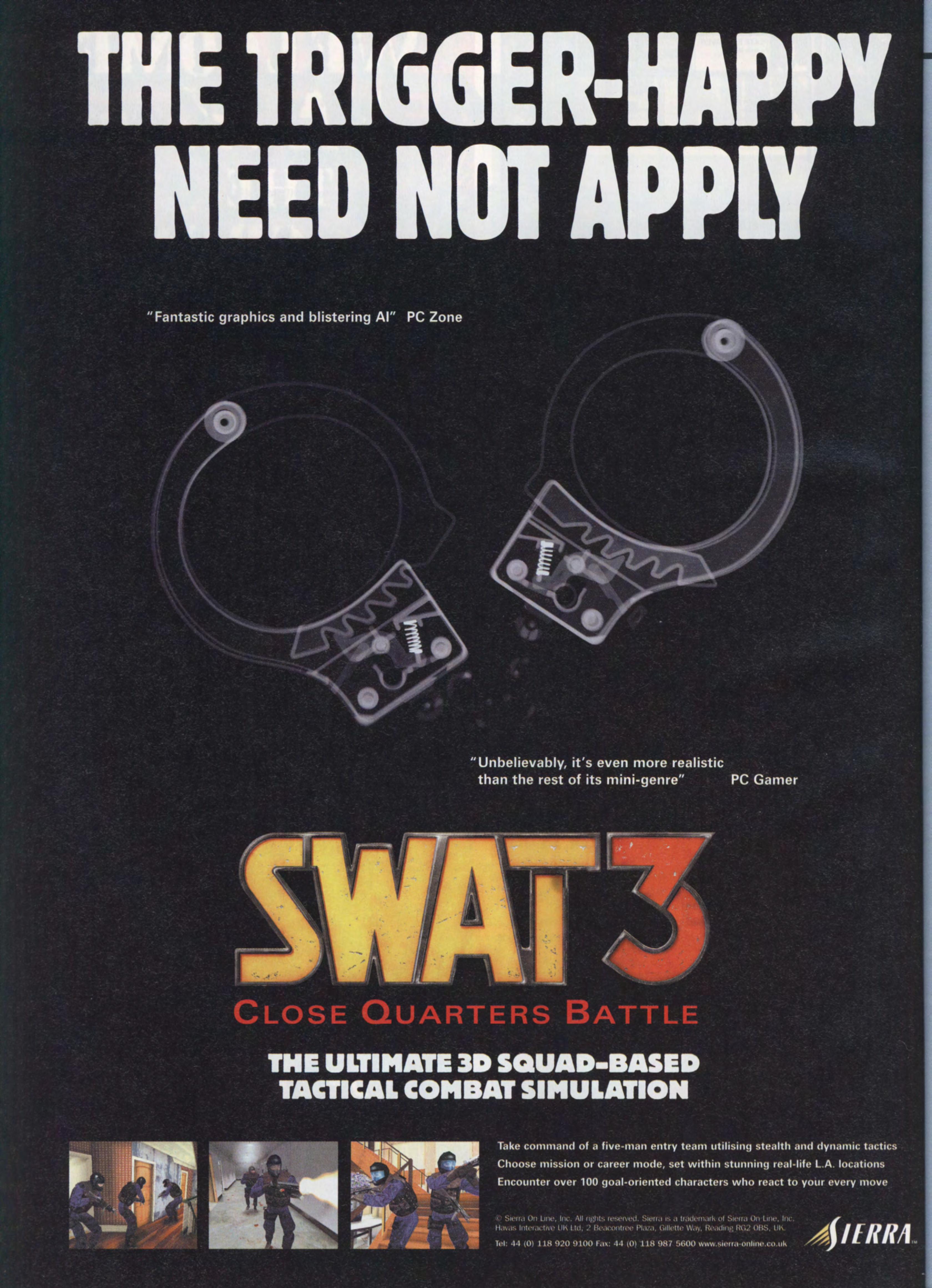 Previous instalments of SWAT have hardly bowled us over with stunning graphics and exciting strategic gameplay, which is why the announcement of a third game didn't cause us to break into hot sweats of anticipation. However, the continuing metamorphosis of the series sees it dropping the Police Quest prefix and the X-COM: Apocalypse isometric view in favour of a real-time 3D, Tom Clancy's Rainbow Six-style tactical shoot 'em up. And boy does it look all the better for it.
