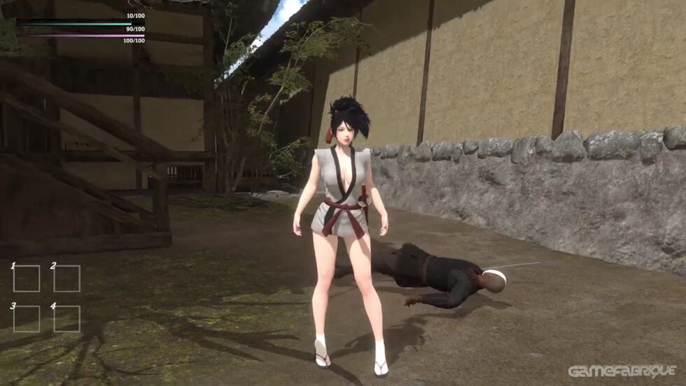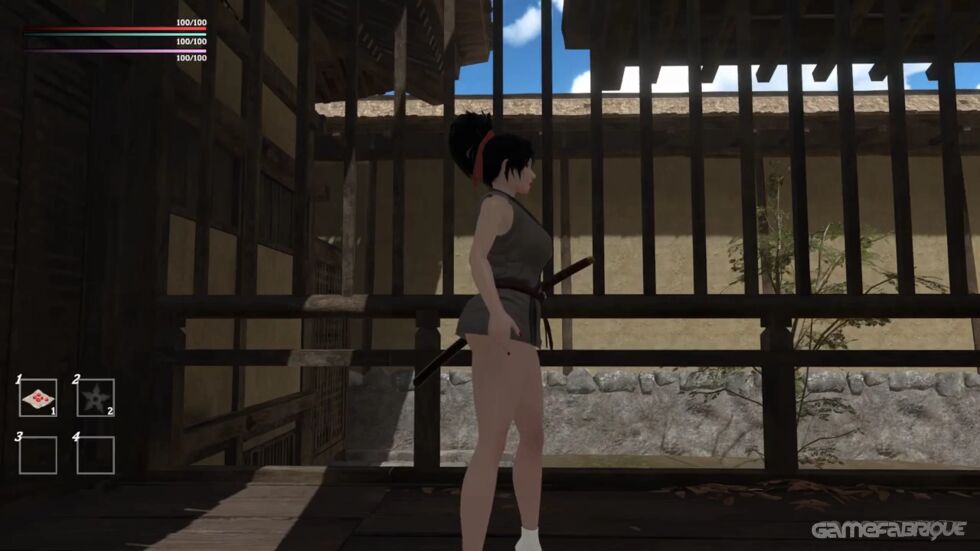 The story of the game is something that I am sure will be worked on as The Lost Shinobi moves along in development, but what is here at the moment is pretty decent stuff. We play as a character called Amane, and we are a shinobi who has been kidnapped and we are being used to kill by an evil lord. We manage to break free from our jail and now must try and gain our freedom. The twist here is that she is willing to use her body to get out of situations, not just by fighting, but sexually as well. She has toxins in her body that, when a man has sex with her, it causes them to die! Kind of like a more extreme version of Rogue from the X-Men games.
