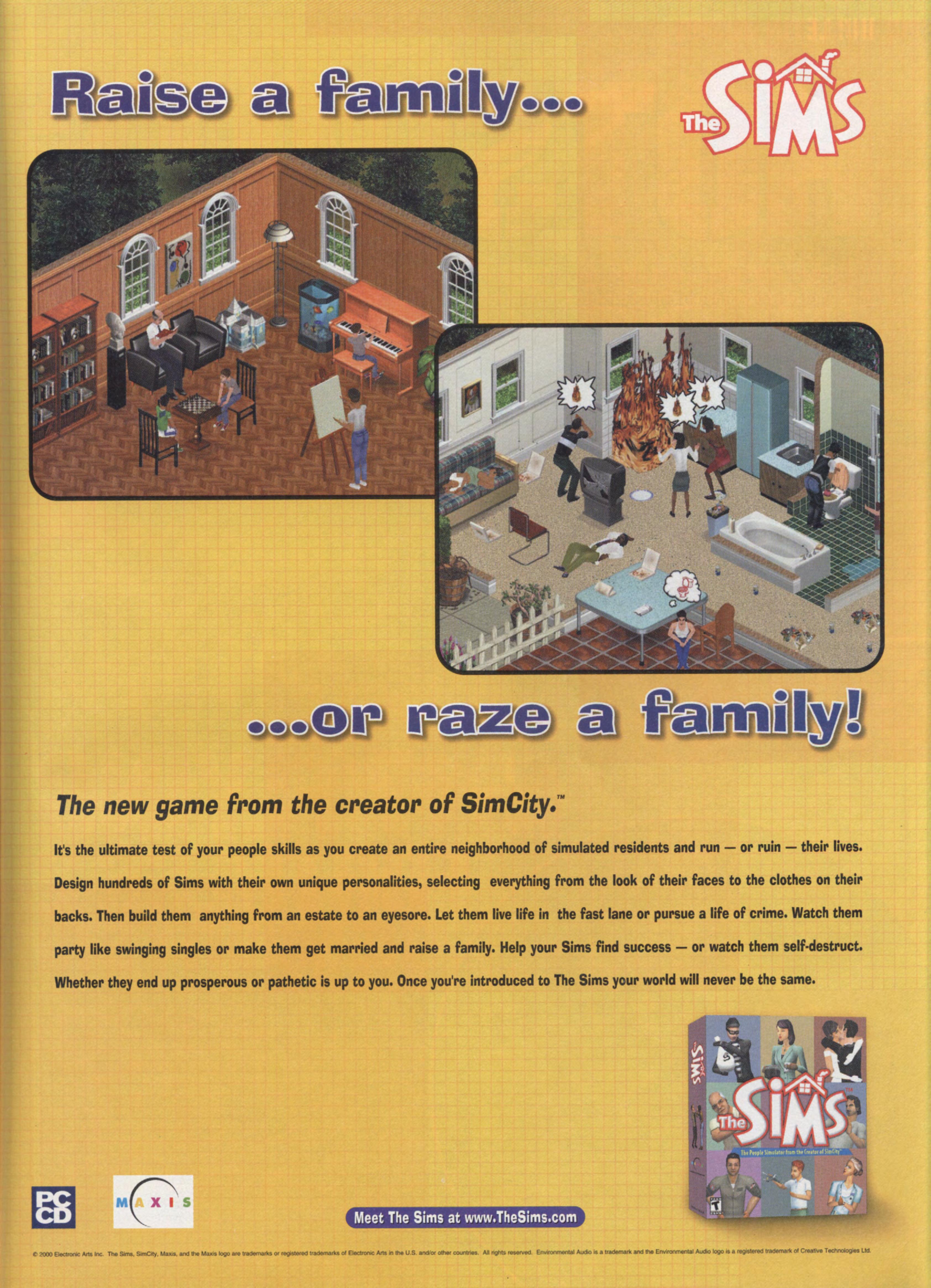 Similarly with The Sims, Wright was influenced by the work of Christopher Alexander who wrote about the functional value of architecture. "I always wanted to do a game involving architecture," Wright explained in one interview. "The Sims has lots of design symmetry to the ideas of SimCity - you must look at traffic patterns in a house, land use and pollution." In fact, during most of its development The Sims was still very much the game about architecture that Wright envisaged. When the actual sim people were introduced they were only intended to be a feedback mechanism to show players how well they'd built the house. "Will pushed it as an architecture game and to this day The Sims really is still that architecture game,’’ claims Patrick Barrett, one of the original software engineers on The Sims. "But explaining to executives that it’s all about architecture was very difficult, so we started pushing it as a people simulator.