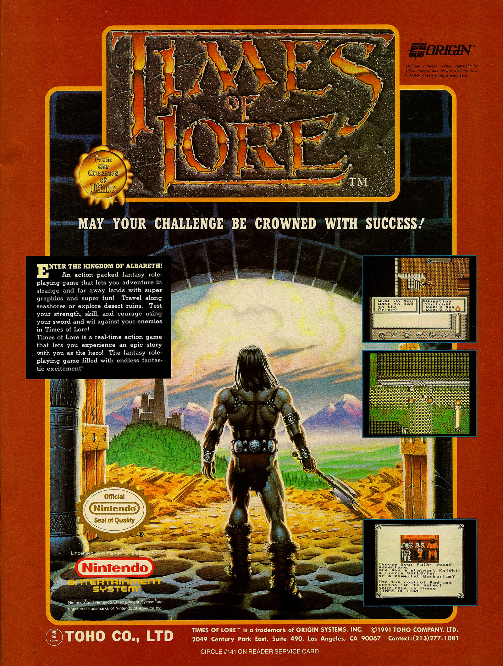 From Origin, the creators of the popular Ultima series comes a new role playing game for the NES. In this game the High King of Albareth has not returned from his quest and there is unrest among the people of the kingdom. Also looting by bandits and monsters has been reported in the countryside and rumors of a cult of dark priests planning to take over the kingdom are starting to appear. You are the brave warrior who must bring peace back to the land.