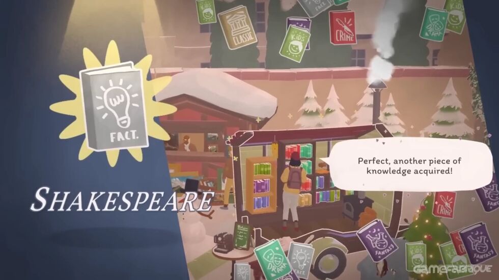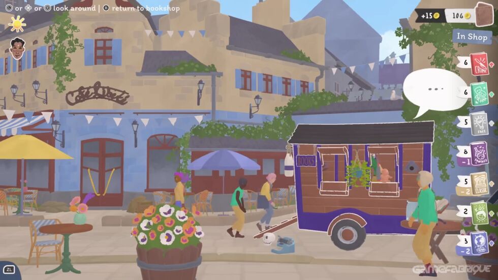 The premise of Tiny Bookshop is that we are running a little bookshop out of a trailer that we drive around, connected to the back of our car. We go to different areas and we offer our customers a variety of different books. One thing that is pretty neat is that these are actual real books, so as you browse your books for your customers, you will be reading the blurbs of tons of books and learning about them as you do. The cozy vibes with this game are evident right from the start, and there is just something very chill about this game. I wonder if anyone will actually try to run their own little mobile bookshop after playing this?