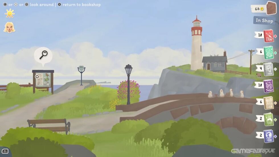The whole aesthetic of Tiny Bookshop could not be any more gorgeous and cozy! From the warm and relaxing colors, the charming music, and the gorgeous-looking artwork that brings the various locations to life, ranging from right next to the sea, to the middle of town, next to a coffee shop that looks just as cozy as your little bookshop! This game has the cozy vibes pretty much down perfectly. It has a very relaxing soundtrack too, and I have found playing this in bed, with my headphones on and the sound not very loud, is like the perfect way to get fully immersed in the cozy vibes that this game is offering.