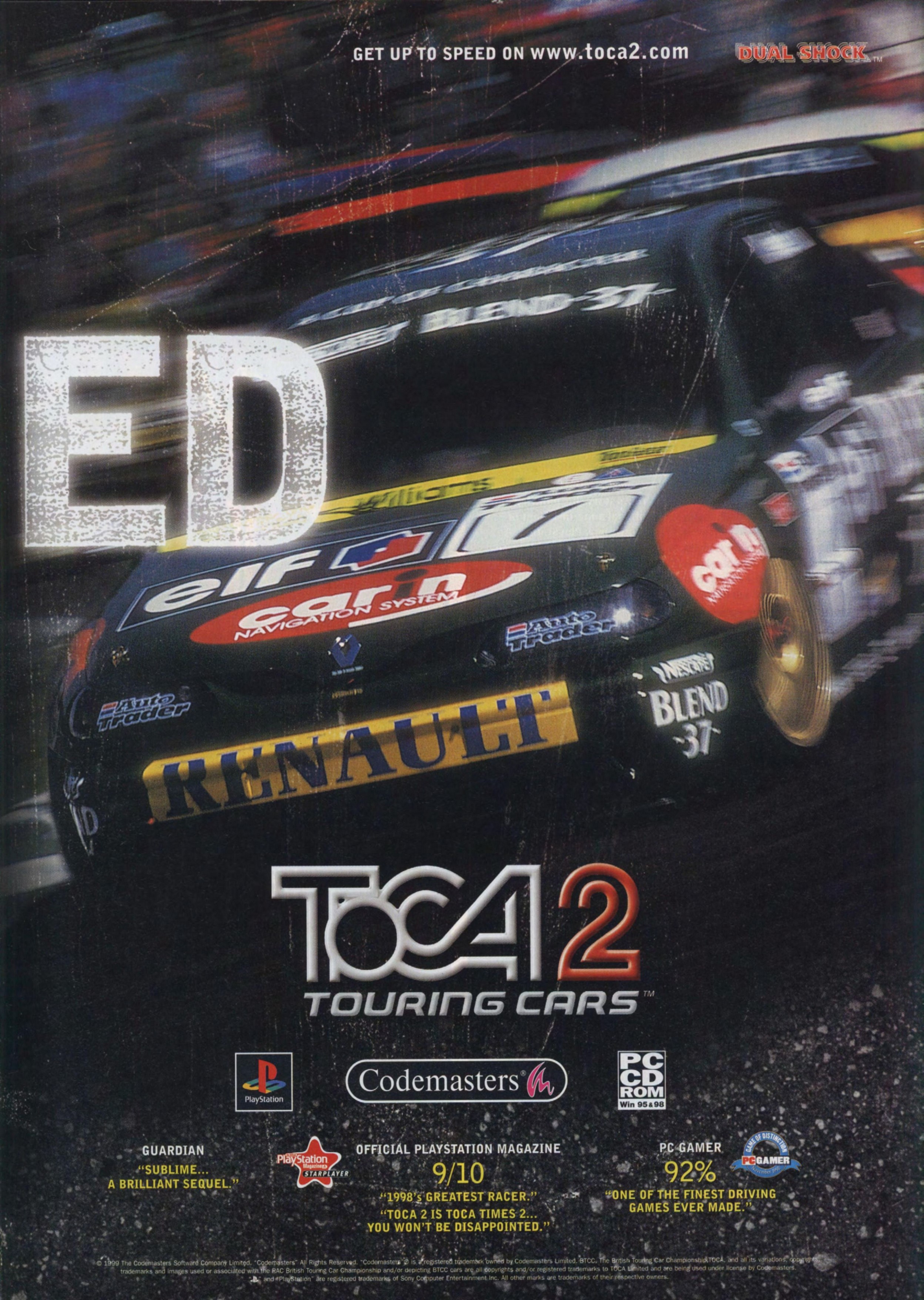 In summary, then, TOCA 2 is not the hardened simulation it once was, and instead it provides a pliant ride for everyone and anyone. It's now a thoroughly polished game, with enough playability and sufficient depth to make it one of the more durable classics around.