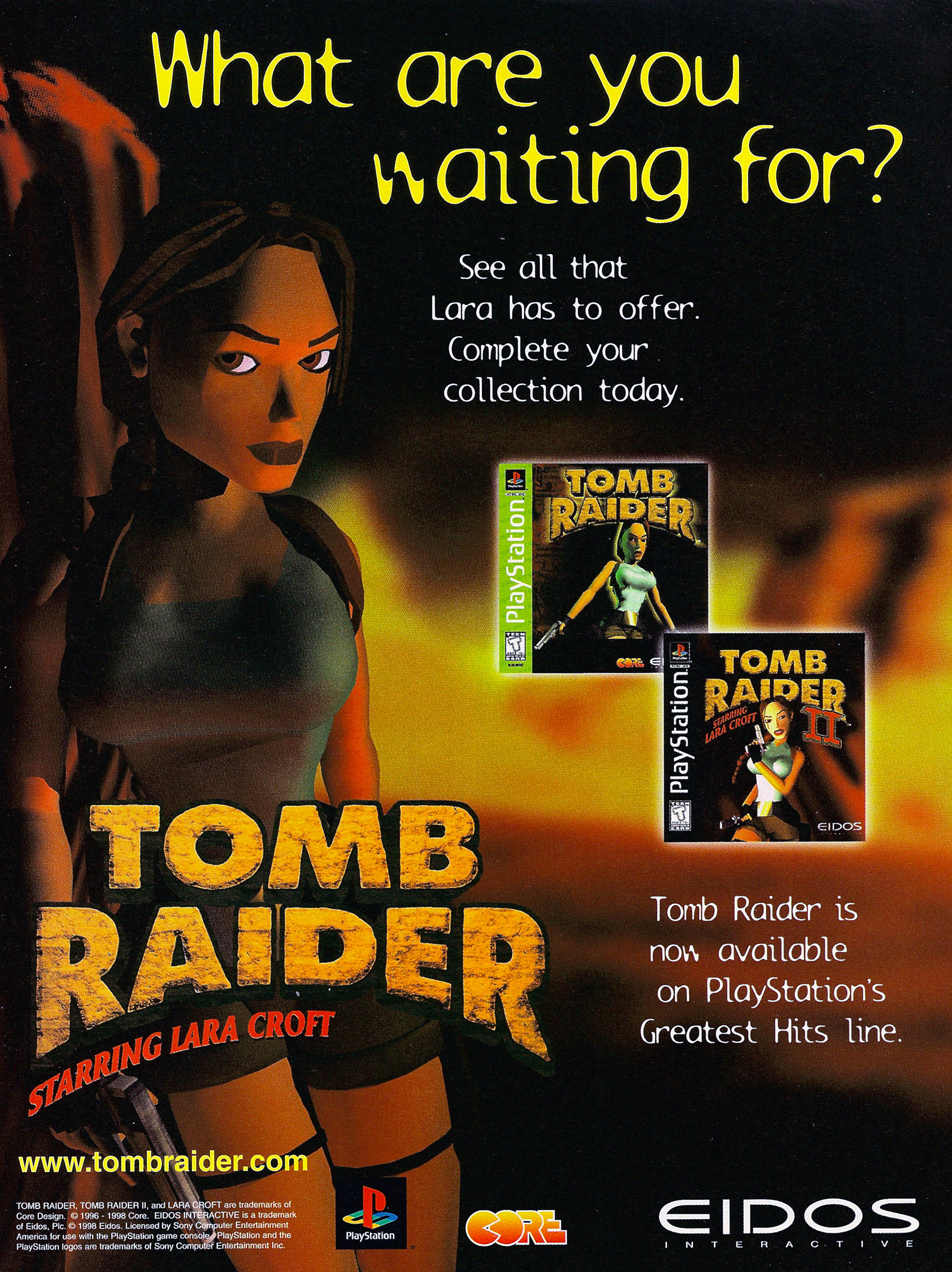 Tomb Raider came as a surprise to me; I never expected such great control and graphic from a game NOT made by Miyamoto and his team! Playing Tomb Raider is a pure joy; true 3-D environment, responsive controls and a knock-out story line complete with cinemas. What more could you ask for? If anything at all could be improved in Tomb Raider, it's the anti-aliasing. With that small enhancement, the game would be a total dream. The scope of the levels makes up for this, and you will be hard-pressed to complete it in one sitting. That is, of course, unless you don't eat, sleep, work or go to school! (Don't do this. Really.)