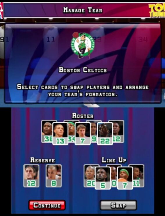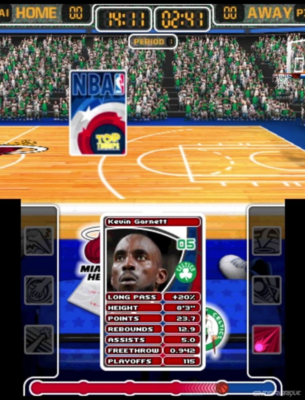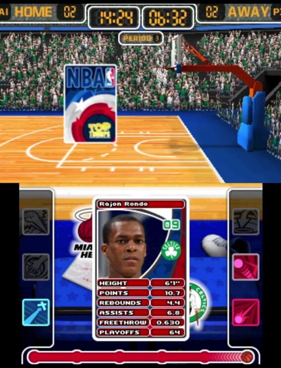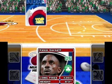 Top Trumps: NBA All Stars is an old-school basketball simulation game for the 3DS platform, based on the principle of a card game. First, you recruit players for your team using cards with the names of real famous athletes (for example, Kevin Garnett, Rajon Rondo, Jerryd Boyless). You can immediately choose a ready-made team, such as the full roster of the New York Knicks. After that, the match begins, the essence of which boils down to your player having to score a goal in the opponent's basket. During the round, the ball will pass from hand to hand, limiting you in time to choose your next action.