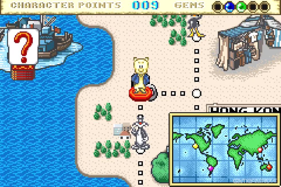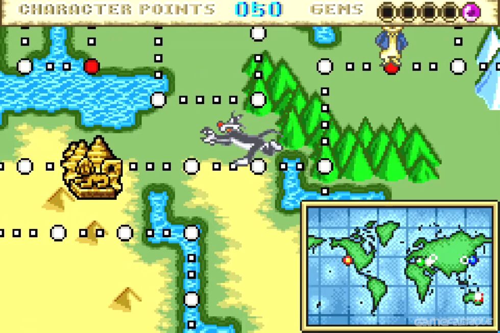 Tweety & The Magic Gems is an old-school cartoon-style JRPG party game in which players must help a bird named Tweety break free from the stone shackles imposed on her by dark magic. Her friends are ready to face all challenges and find a way to free Tweety. To do this, you need to collect a whole collection of colorful gems. The playing field looks like a classic map with cells for most board games. Various events await them on each cell, such as a game store or an additional mini-game. The number of moves is determined by the number shown on the card you draw. Move forward until you have visited all the available subzones.