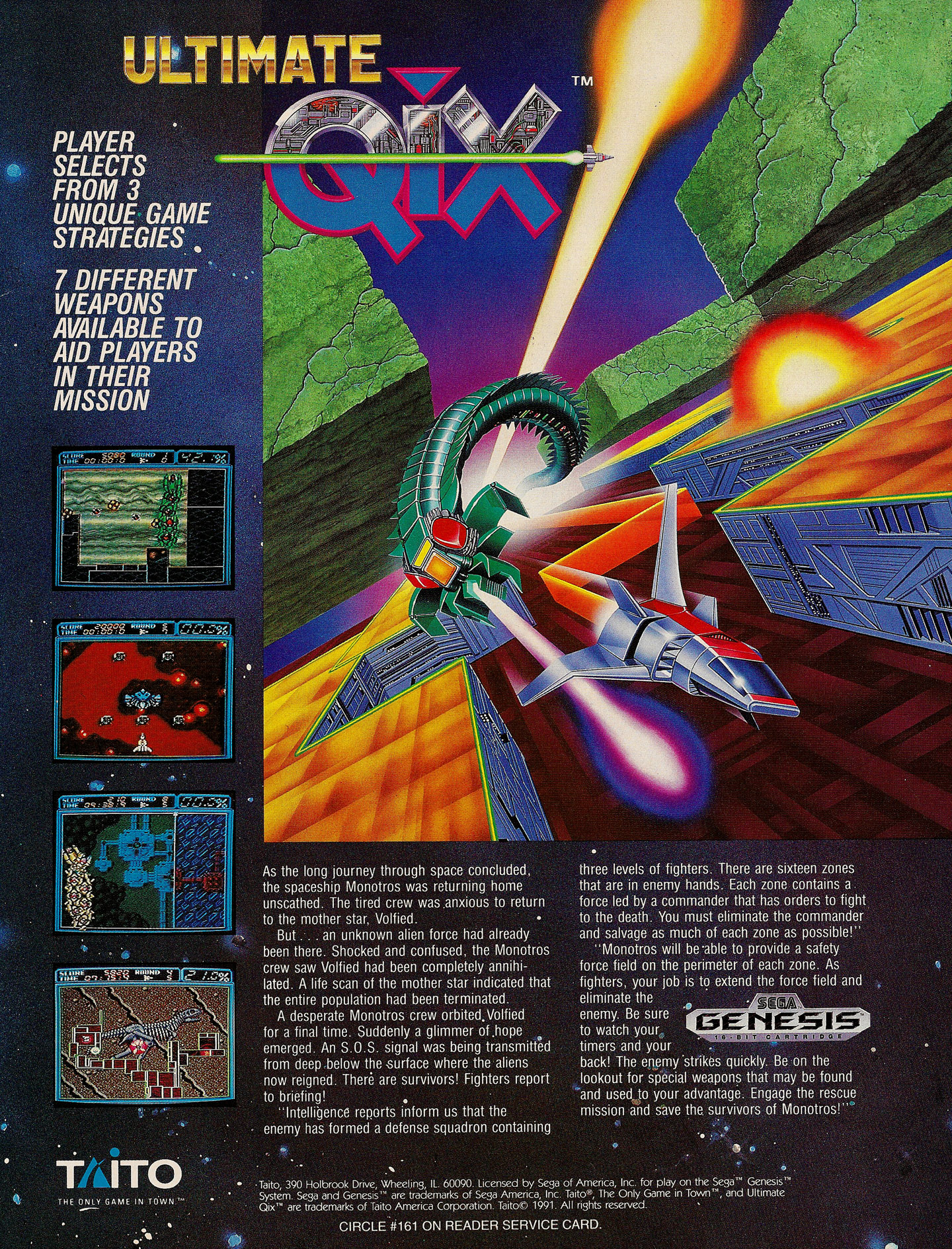 Taito is bringing a revamped version of their arcade classic Qix to the Genesis. Featuring great graphics and cool backgrounds, Super Qix also has a variety of power-ups.
