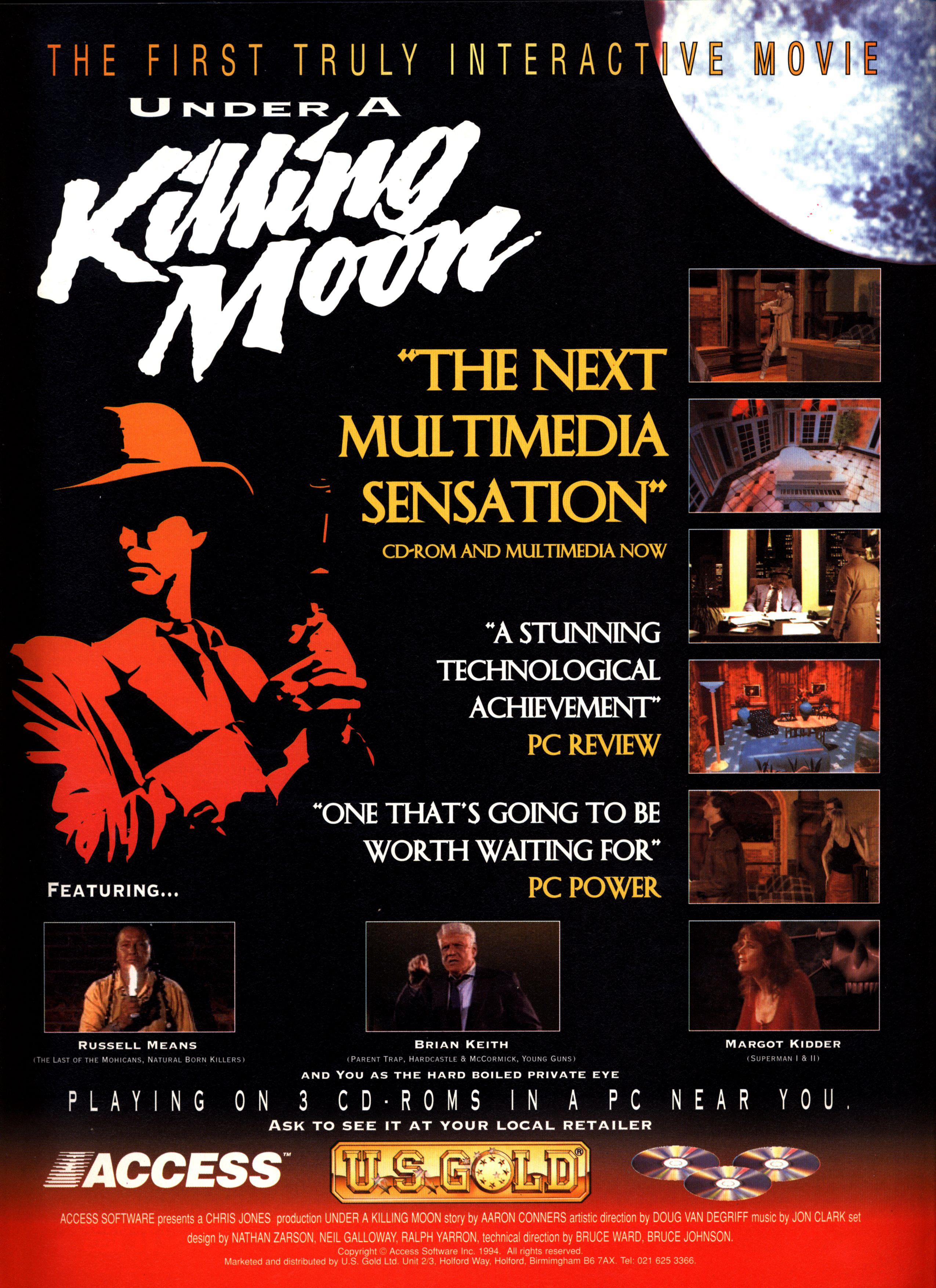 Fully-fledged interactive movies were something of a novelty when Under A Killing Moon came out, and it was all a bit scary and new. But when you come right down to it, it's not actually too bad, for its ilk. All talkie (and a rather lengthy talkie at that), it comes on four CDs, and features international megastars like Margot Kidder and James Earl Jones.