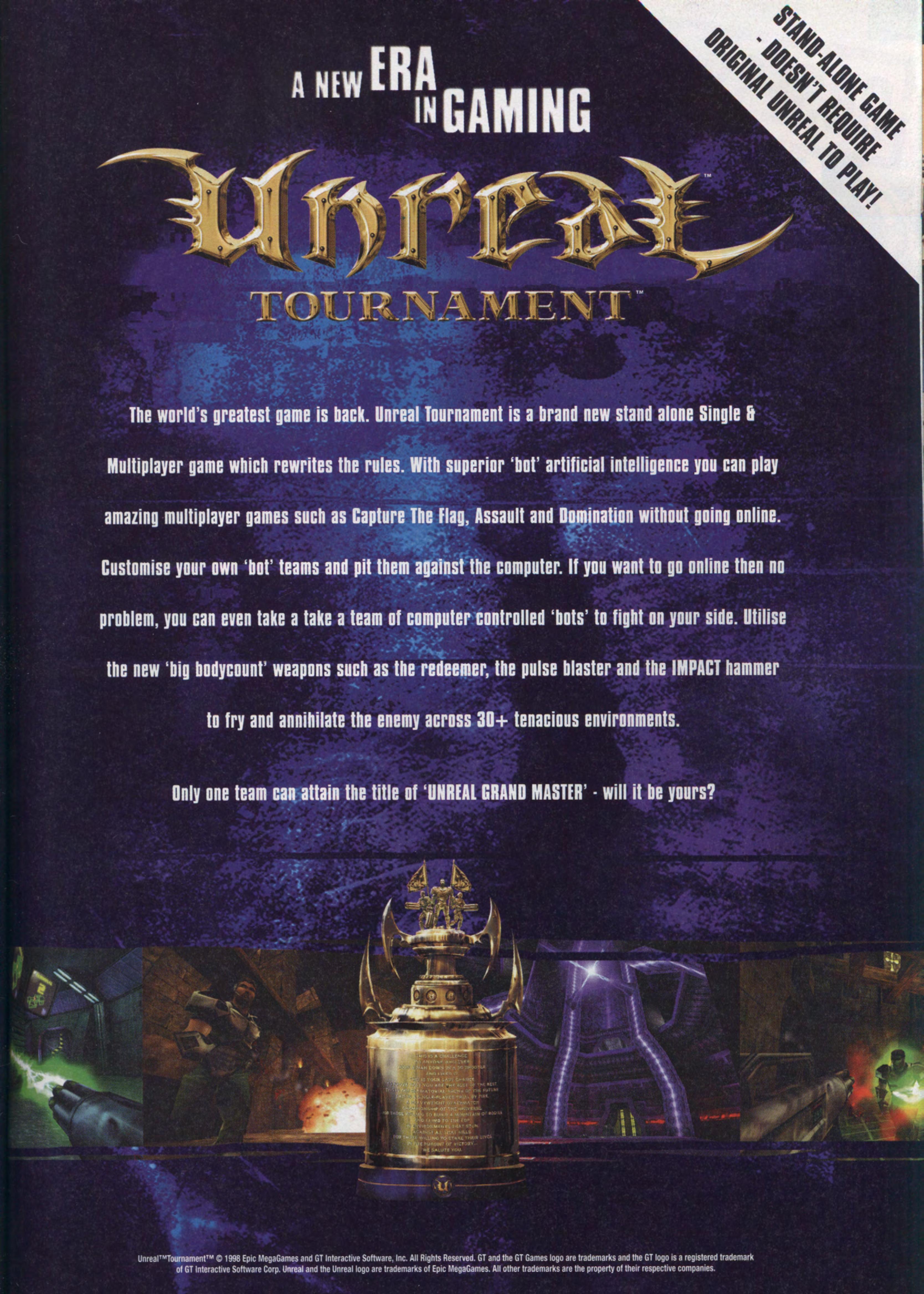 It Was Only meant to be an expansion pack. Hard to believe, given that Unreal Tournament was to challenge Quake as the king of multiplayer shooters in one brutal and unexpected assault. Perhaps the greatest irony in this tale of UTs meteoric rise and world-shaking success is that, had it not been for its more illustrious id Software-created predecessors, Unreal Tournament may never have even existed. Rarely, if ever, can there have been a clearer example of the student becoming the master than in the shockingly short ten-month cycle it took to transform a bot-based add-on pack into a game which would shake the very foundations of the still burgeoning online first-person shooting genre.