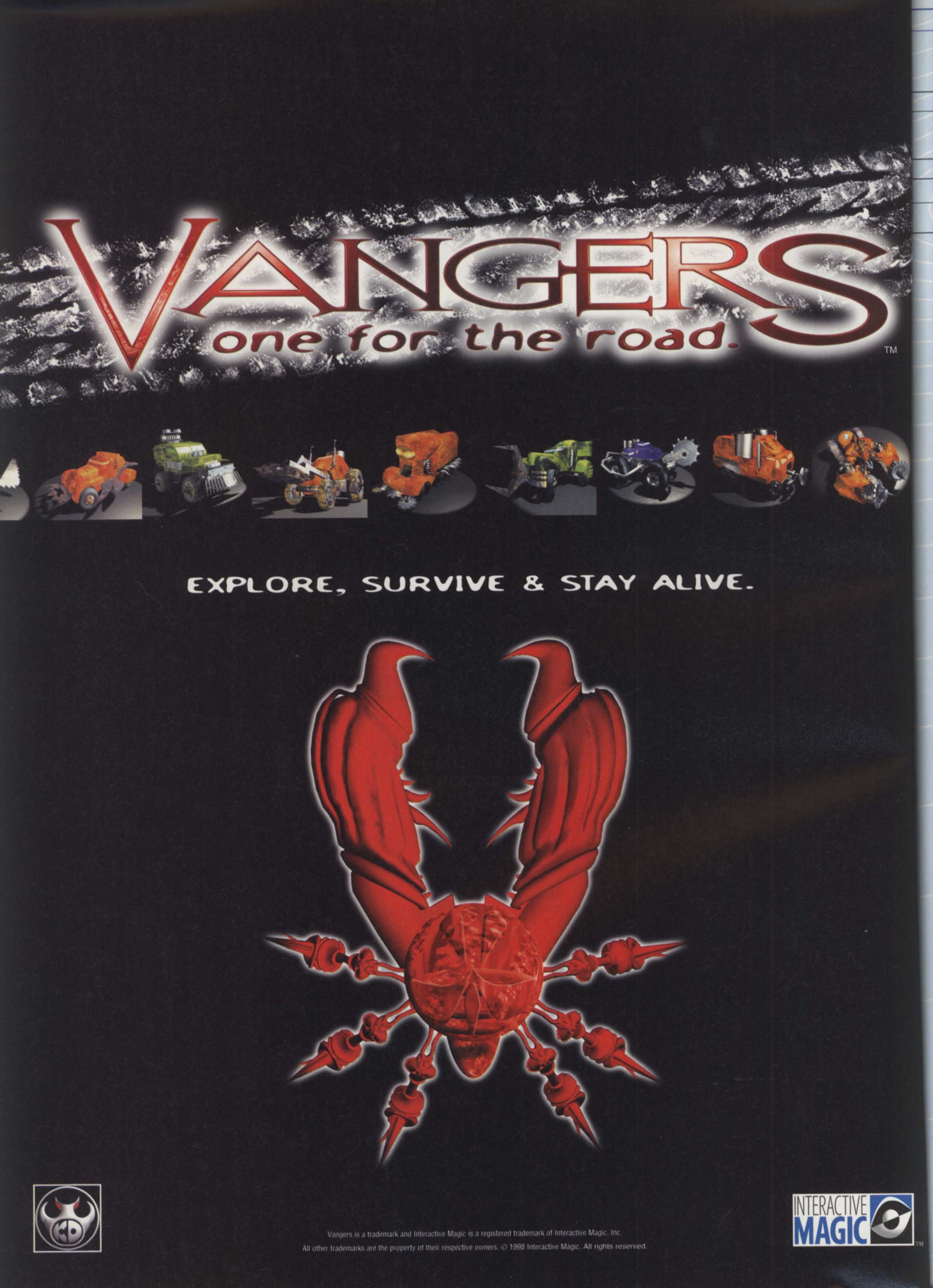 Welcome to a future in which road rage is not only approved of, it is a way of life. Especially for a Vanger, a mechos pilot whose only duty is to serve the counselors. To do this, the successful Vanger must explore new worlds, haul dangerous cargo, race rival Vangers, and sometimes, even hunt or be hunted by them. As the game begins, the player as a newbie Vanger begins with a small mechos -- a motorized, armored vehicle -- and the simple task of going out to be a Vanger. Be a good Vanger and your reputation will go up. As your reputation rises, you will discover new worlds, gain new weapons, and destroy many other mechos.