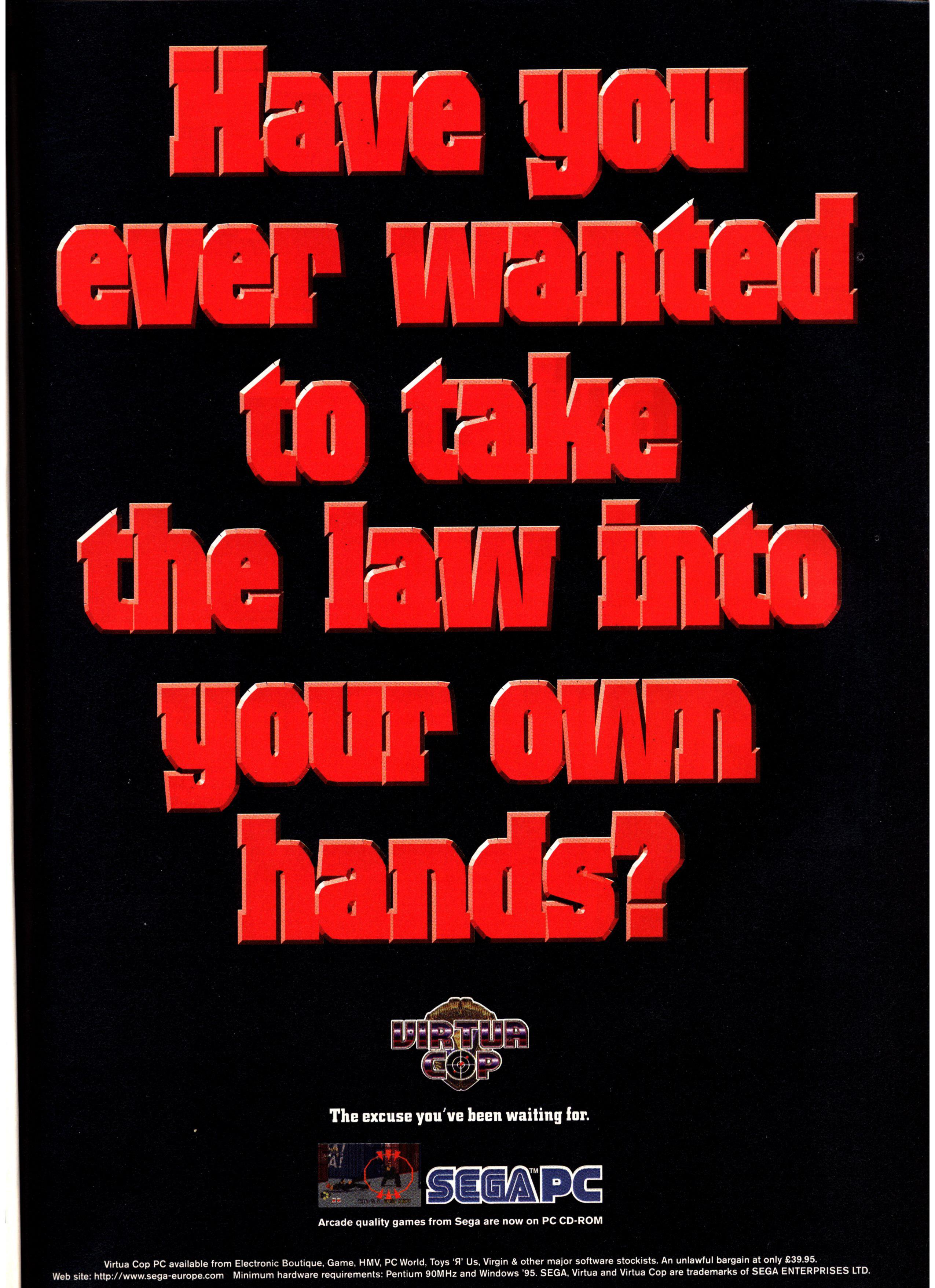 If you're at all familiar with Virtua Cop, it will almost certainly be because you're one of those types who visit arcades, push loudmouthed children out of the way and put all your beer money (or curry money or child maintenance or whatever) into the machines. You will also almost certainly be aware that Virtua Cop has been more or less superseded by another shooting game called Time Crisis, which has something to do with a frustrated watchmaker going berserk in the streets of Gstaad with an automatic pistol. (Something like that, anyway. We don't really pay a lot of attention to the plots.)