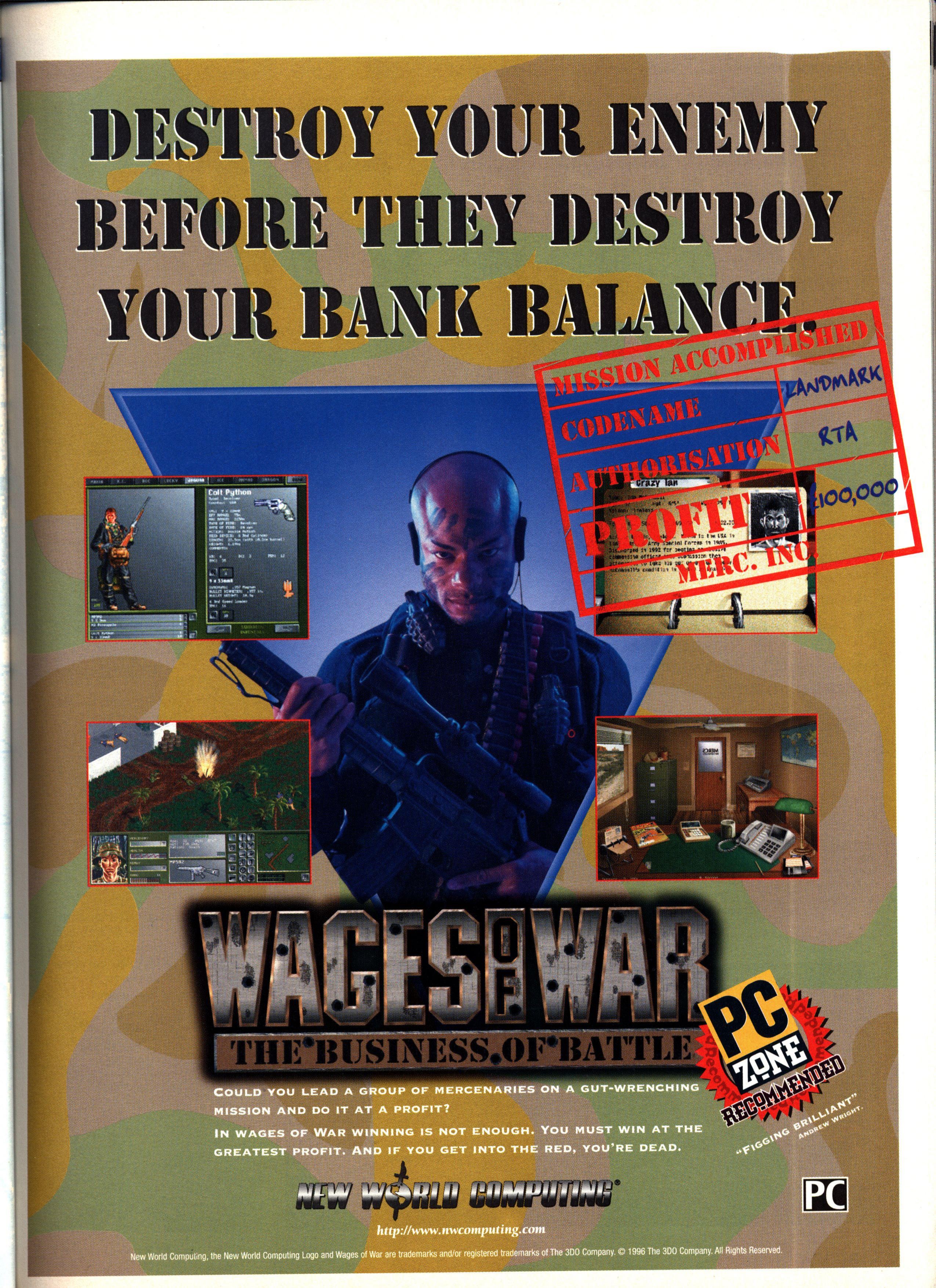 The preparation part of Wages of War was more fun than anything else -- you have to choose how to outfit your troops, which becomes an all-important facet of how you do on your missions. Unfortunately, that part only constitutes about twenty percent of the game, and the remainder of the play is pretty much just frustrating. If you want a turn-based strategy war game, there are a lot of titles on the market that do at least as well as Wages of War. Overall it rates a 45 out of 100.