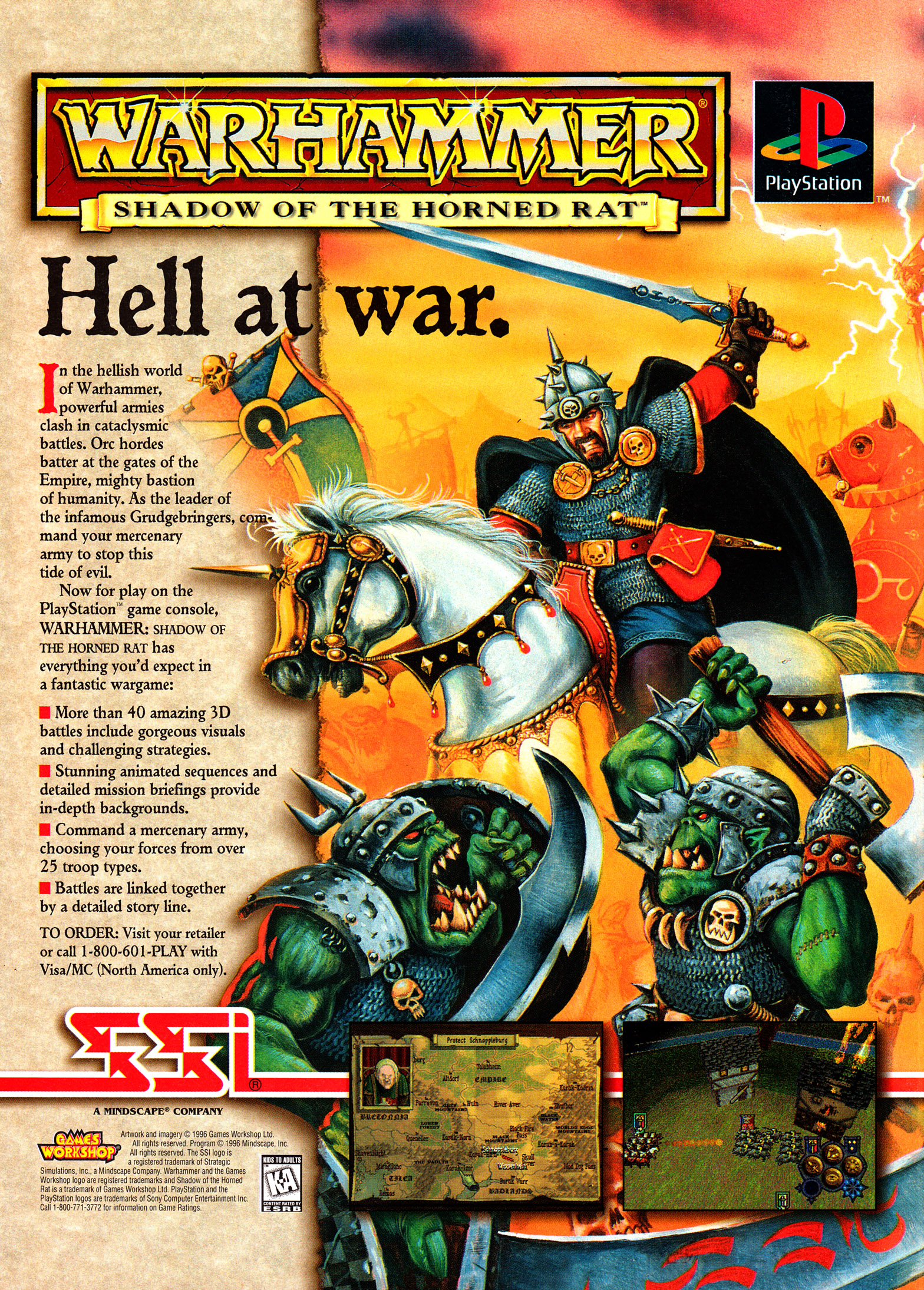 A mediocre title for the PC a year ago, Warhammer: Shadow of the Horned Rat retains its mediocrity on the PlayStation. Extreme intellectual complexity and slow action take the thunder out of Warhammer for all but the most strategy-minded gamers.