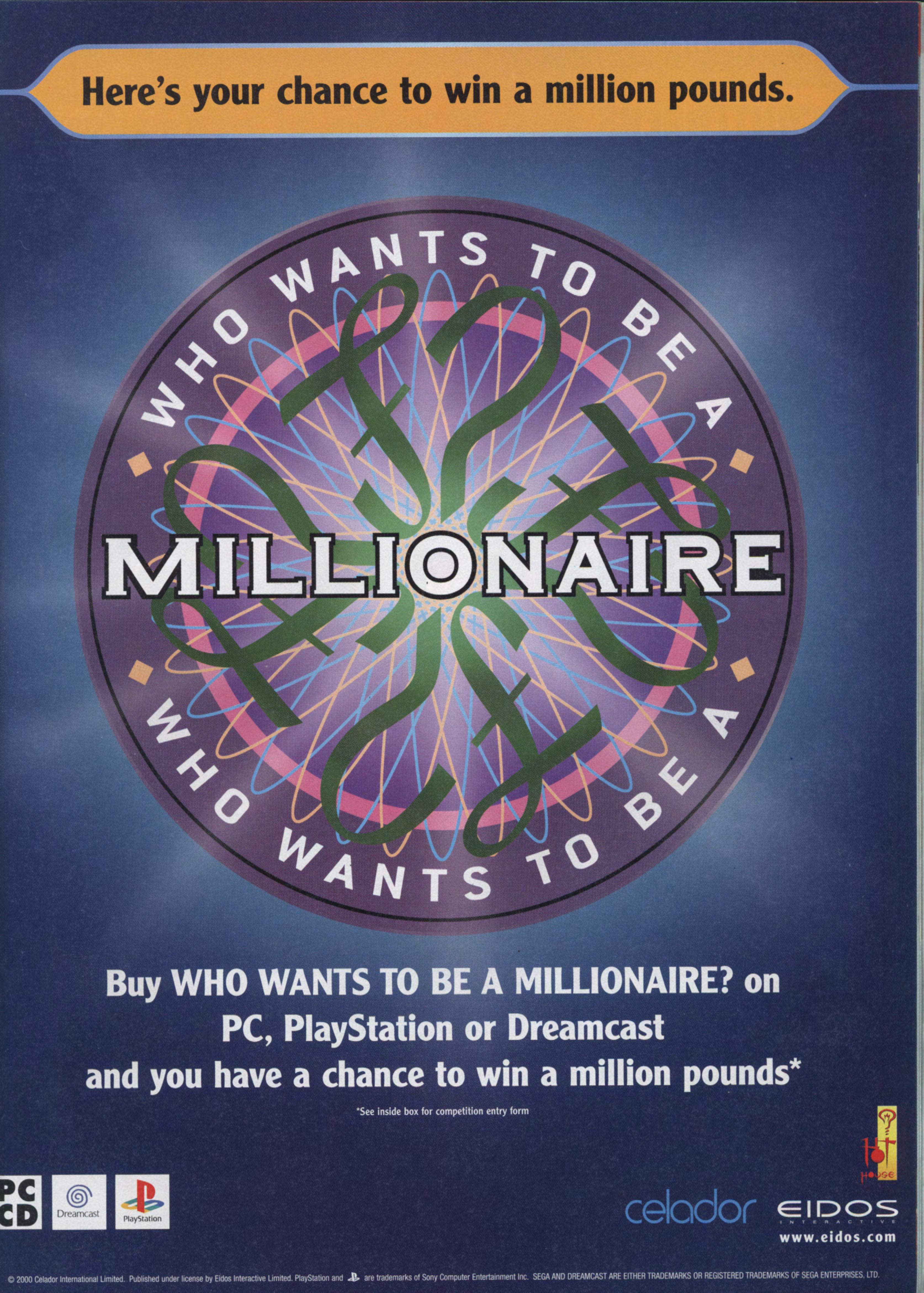 As a PC quiz, WWTBAM is not as funny as You Don't Know Jack, and to be honest, despite all the multimedia dribblings that come on the CD you're probably better off finding a cheapo copy of the paperback that was a bestseller last Christmas. Even better, phone the number that flashes up at the end of the TV program. Why play it on your PC when you can play it for real cash? Who Wants To Be A Millionaire? Celador does. A million times over.