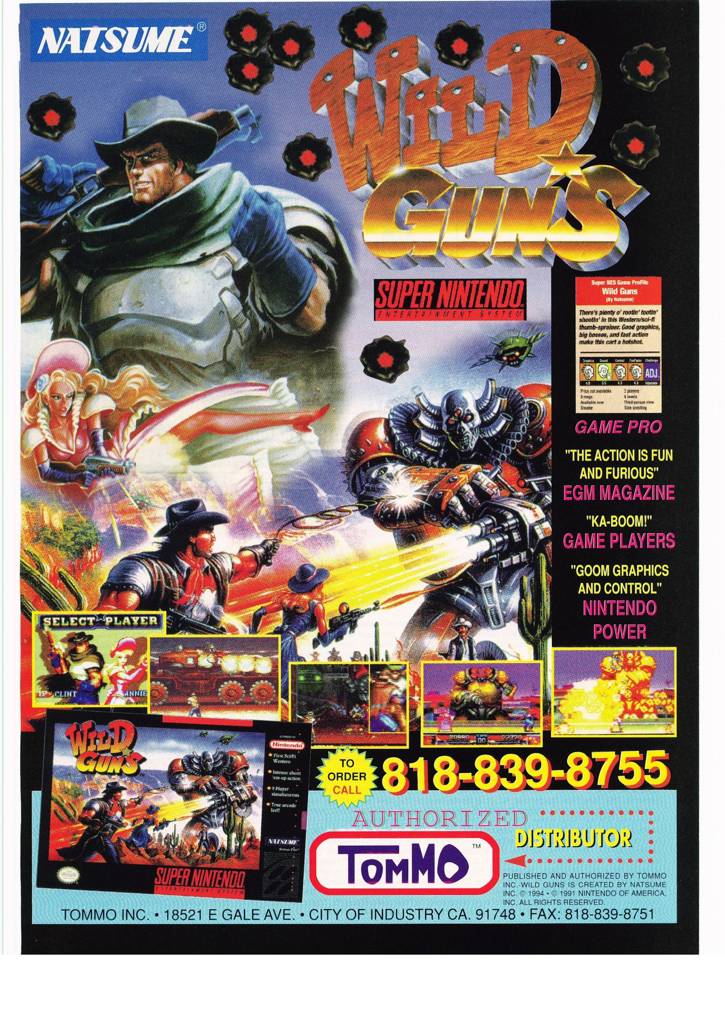 Wild Guns is a third person shooter developed by Natsume for the Super Nintendo Entertainment System. The game was released in Japan in 1994 and in North America in 1995. The PAL version for Europe and Australia was released in 1996 and was published by Titus Software. The game is also available on Nintendo’s Virtual Console Wii since May 2010 and in the PAL region since August 2010.