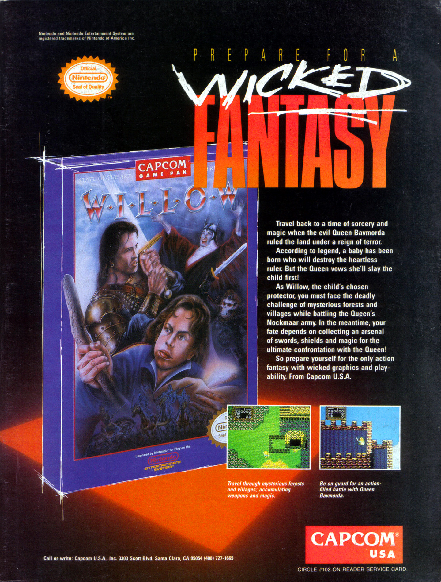 Like the plot to the original movie, there's nothing new or remotely unique about Capcom's Willow. The company itself, however, deserves high marks for producing a game with a great deal more substance and depth than most film inspired video games, which are usually slipshod efforts with game scenarios that have little, if anything, to do with their source material. For all NES adventure gamers who just can't seem to get enough of what's already out there, Willow comes highly recommended - and deserves recognition for what it is on its own, apart from its cinematic counterpart.