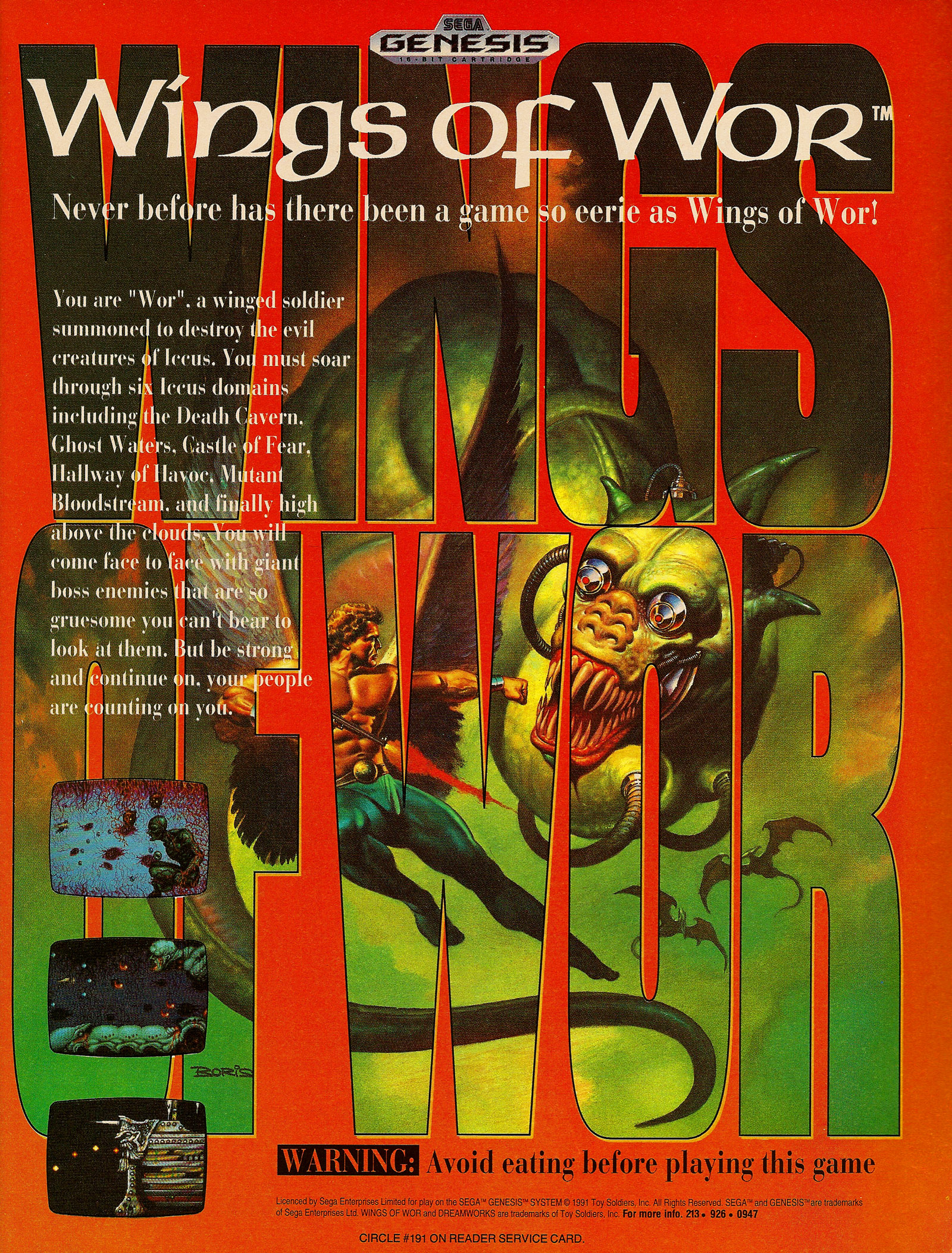 In this new shooter from DreamWorks you are Wor, the ultimate battle master. You must defeat the evil mutants of Iccus before they can gather all their forces to take on the entire galaxy. Fly through six levels of underground caverns heavily infested with some of the most grotesque demons ever to grace the Genesis. Get to the ultimate force itself in order to stop this armageddon from repeating itself!