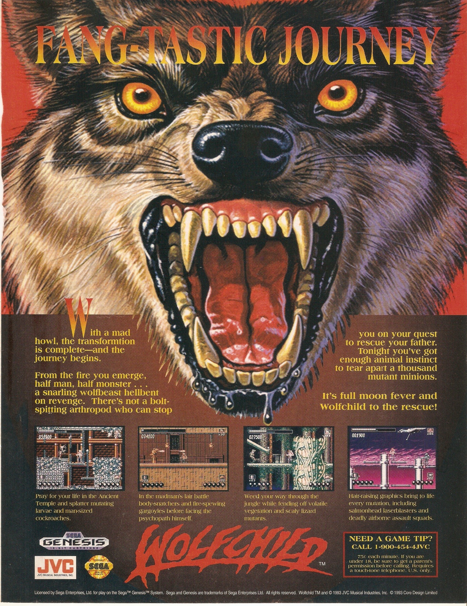 VC's latest action/adventure Genesis game, Wolfchild, is an example of science gone mad. From mutant fish to lizard-like humanoids, Wolfchild packs enough lycanthropic chills and spills to make even Lon Chaney unhappy.