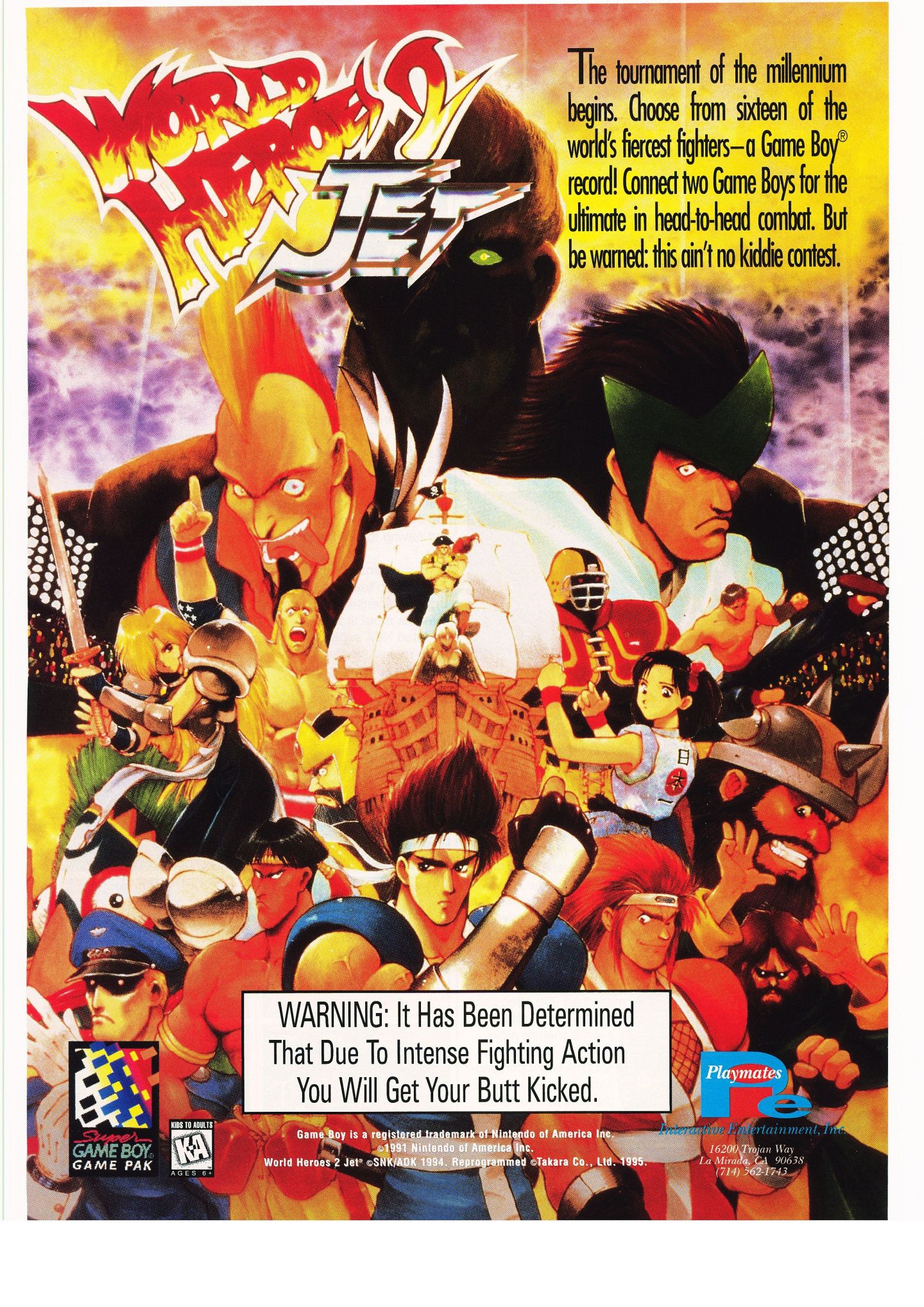 You wouldn't think Playmates would be able to cram 16 fighters (with special moves) into a tiny 4-meg cart. Think again. World Heroes 2 Jet is a scaled-down version of the Neo-Geo fighter, and for its size, it's a portable punch-out.