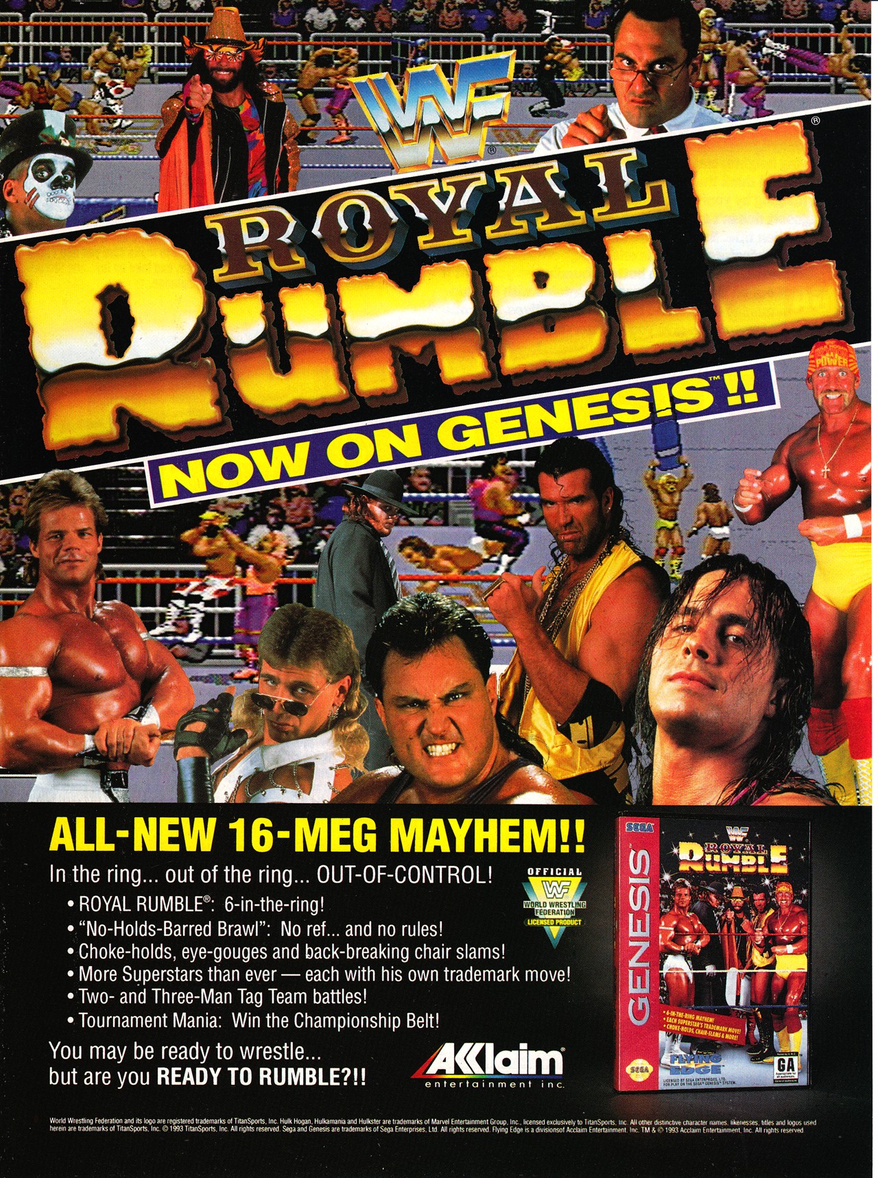 I have always enjoyed WWF Royal Rumble and even now I think that the game is a lot of fun. I do feel that the SNES version is the better game. Not just because of the roster, but because the SNES has a standard 6-button controller. You can still have fun with this game with a 3-button controller, but it takes a great deal of work. Still, if you are a wrestling fan you need to give this one a try.