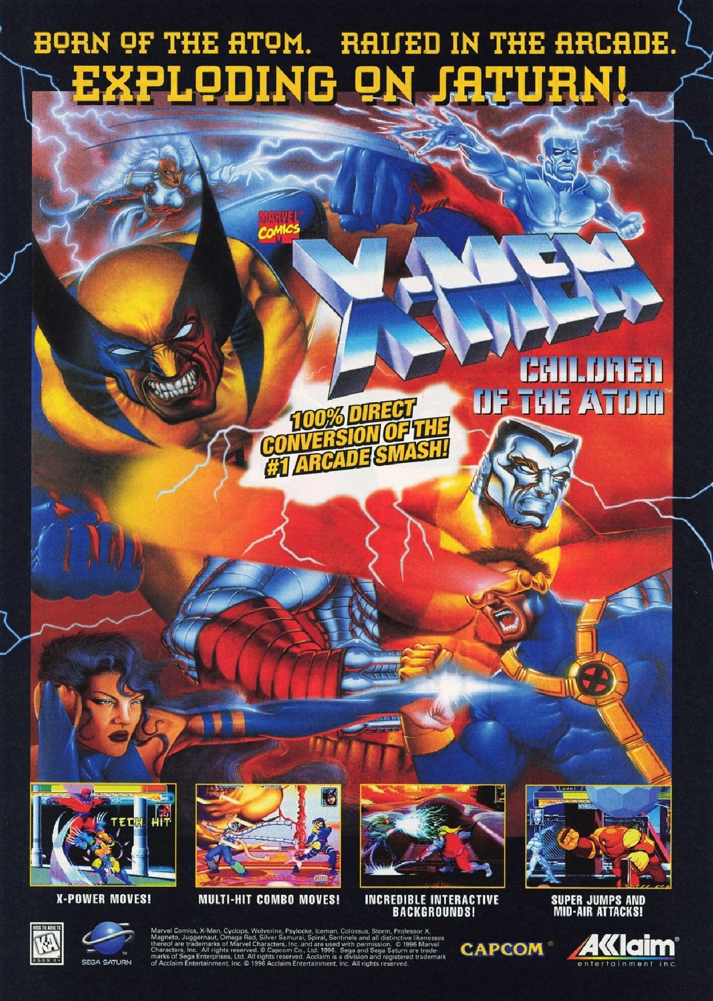 Many hard-core gamers out there in video-game lollipop land had a low opinion of Capcom's arcade fighter X-Men: Children of The Atom, but I'm one reviewer who thought it was the bee's knees.Your reaction to the arcade version will determine how much you like the Saturn adaptation because it's virtually identical to its arcade pappy.
