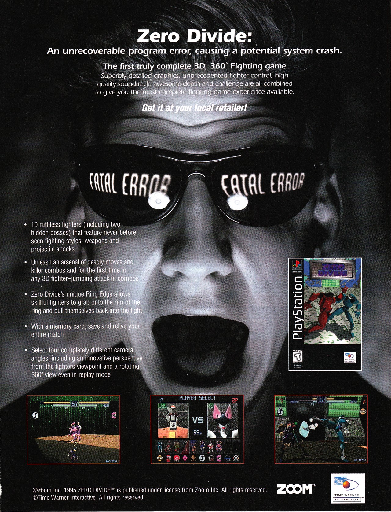 Time Warner is bringing one of Japan's most popular PlayStation fighting games to the States. Called Zero Divide, this disc is one of the few fighters that combines precise player-character interaction with a fair amount of story that actually gives a purpose to your mission.